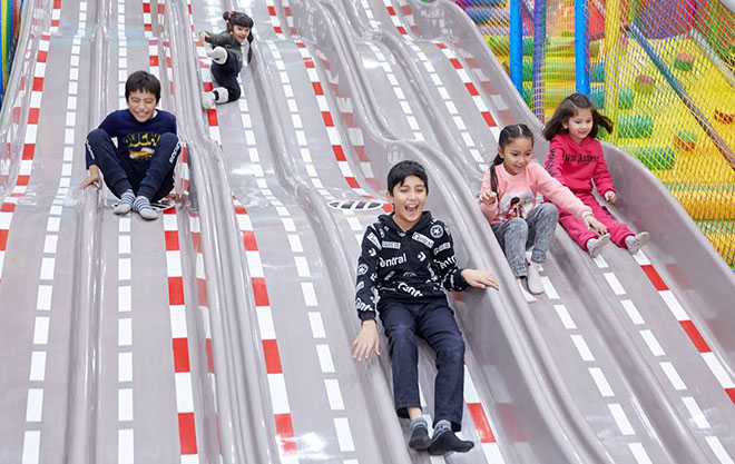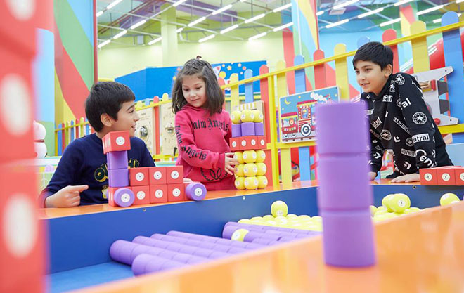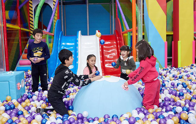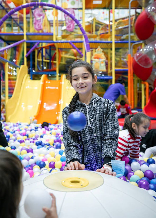С горками, качелями, пушками для стрельбы с помощью мягких шариков и впечатляюще большим сухим бассейном из шариков, подарит кучу позитивных эмоций вашему ребёнку.